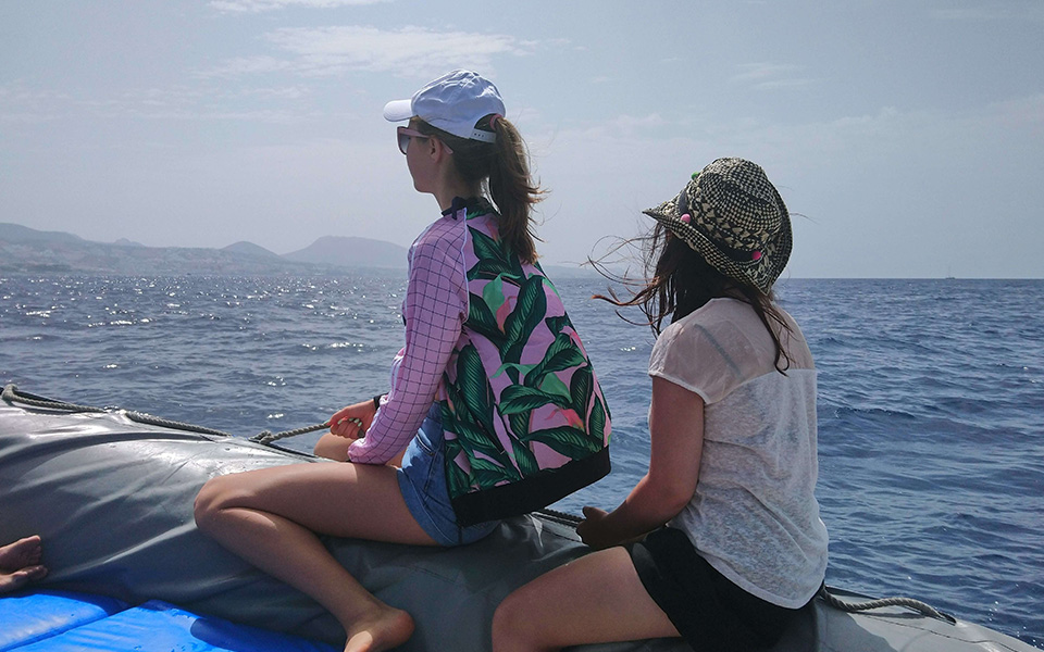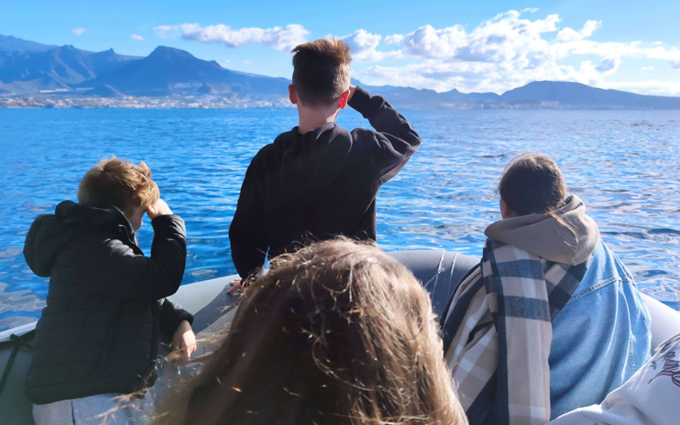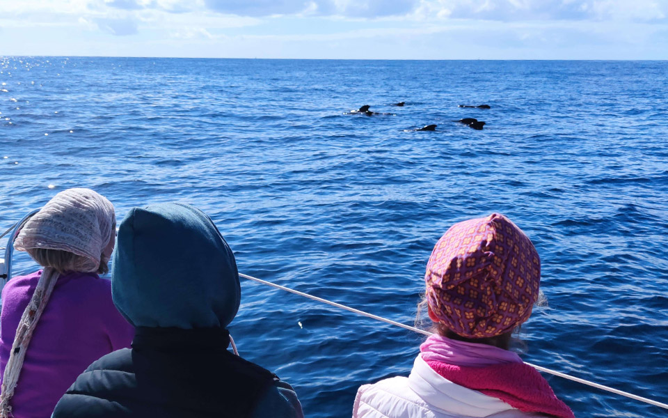 Salimos al Océano en una lancha pequeña, donde poder tener un contacto directo y cercano con las Ballenas Piloto, sin teléfonos, ni cámaras, observando y comunicando desde el silencio.